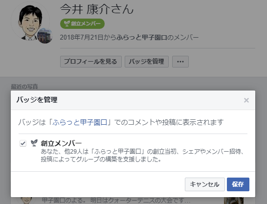 私が作成したFacebookグループでも、「バッジを管理」する機能がありました。