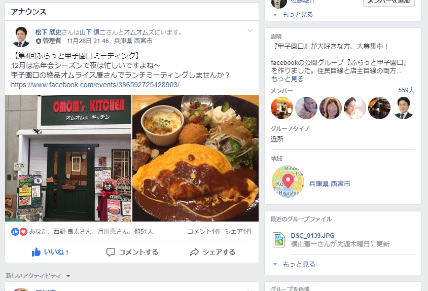 1.Facebook右側の「説明」から、メンバーの人数が表示されている箇所をクリック。